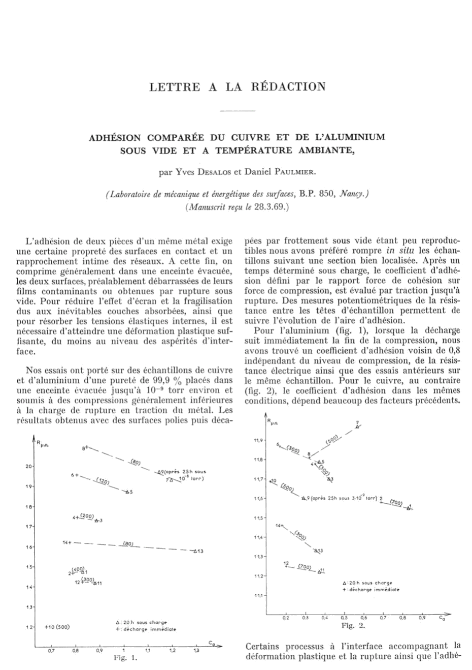 Adhésion comparée du cuivre et de l’aluminium sous vide et à température ambiante